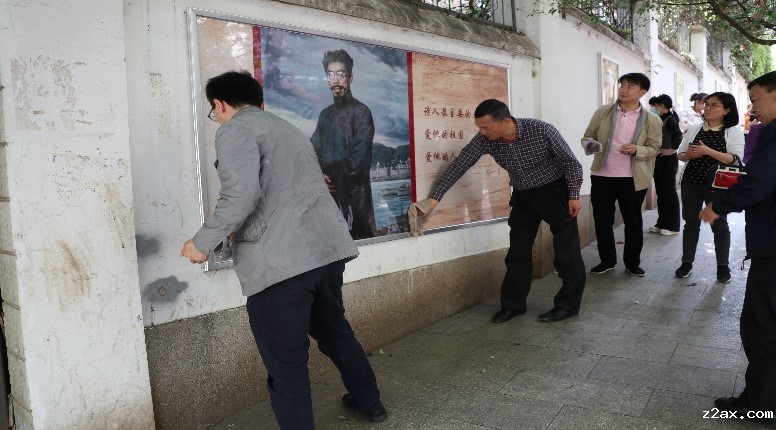 2021年4月12日,机械总院集团云南院党委组织党员到闻一多红烛文学艺术走廊,开展“爱国主义教育”主题党日活动。对闻一多文学艺术走廊的展板义务清洁。